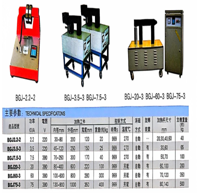 BGJ 系列加热采用电磁感应原理,将被加热工件作为线圈的次级,当被加热工件在感应电流的作用下缠绕并使表面受热膨胀,从而满足过盈配合的需要。